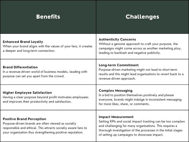 While there are many benefits to purpose-driven marketing for brand authenticity and trust, there are certain challenges that sports organisations should be aware of in their cause-driven journey.